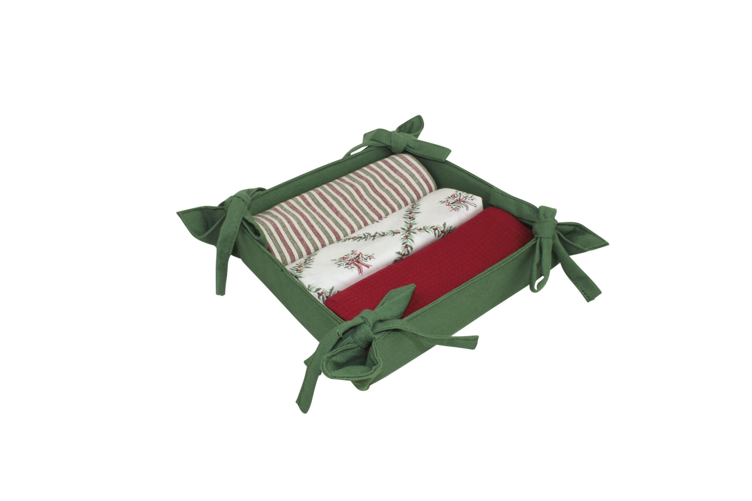Cestino con tre strofinacci: ghirlande, righine, ape rosso Linea Lavilla Home