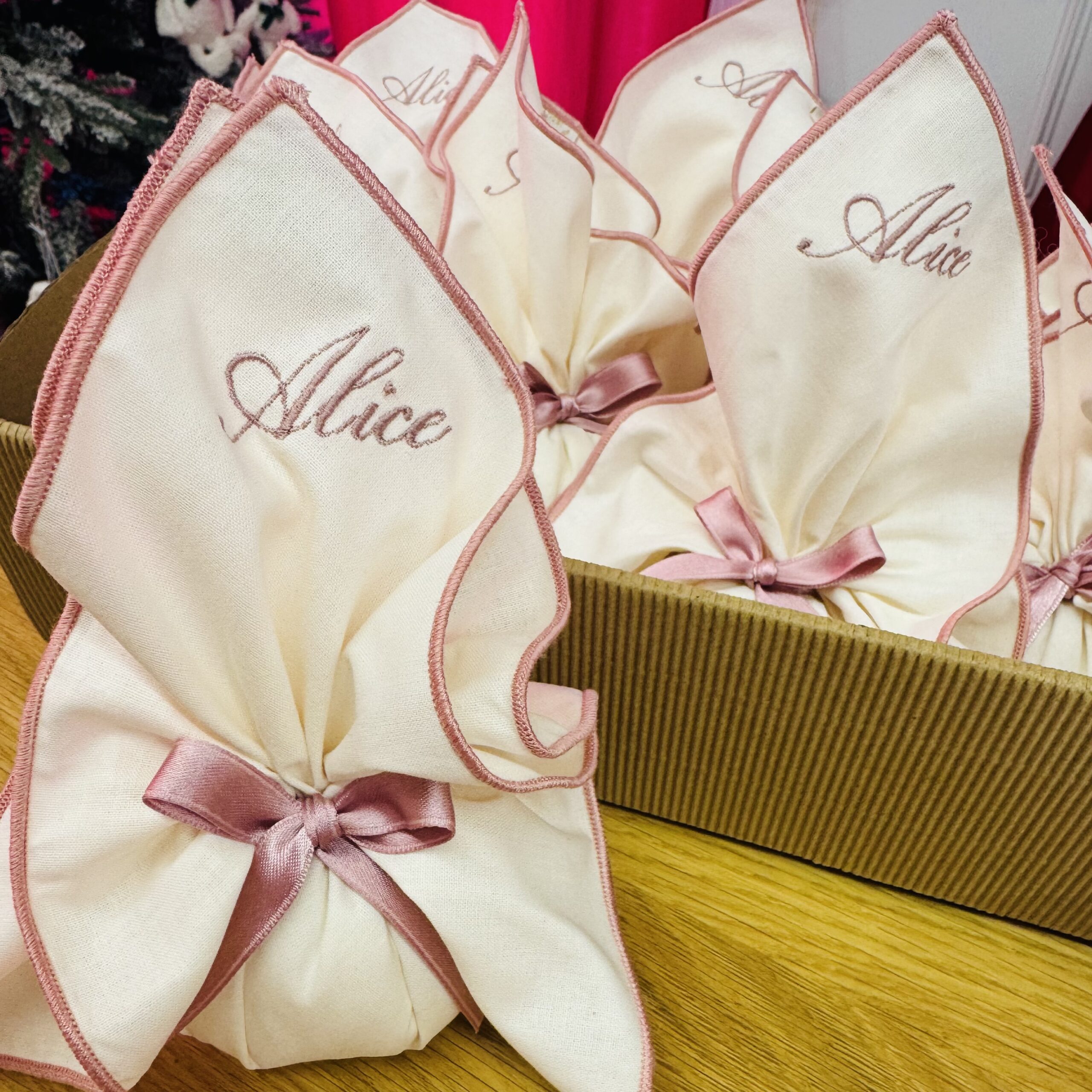 Bomboniera fazzoletto sartoriale portaconfetti in cotone 100% con ricamo personalizzato