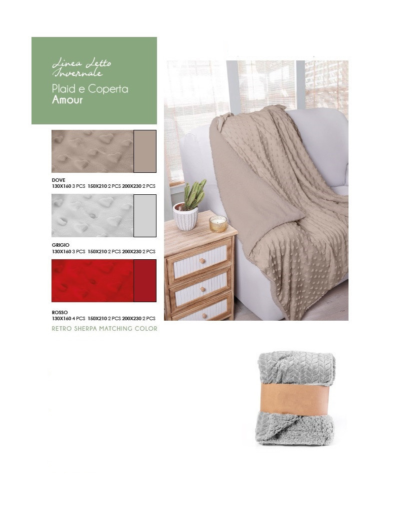 Plaid grigio in ciniglia con cuori