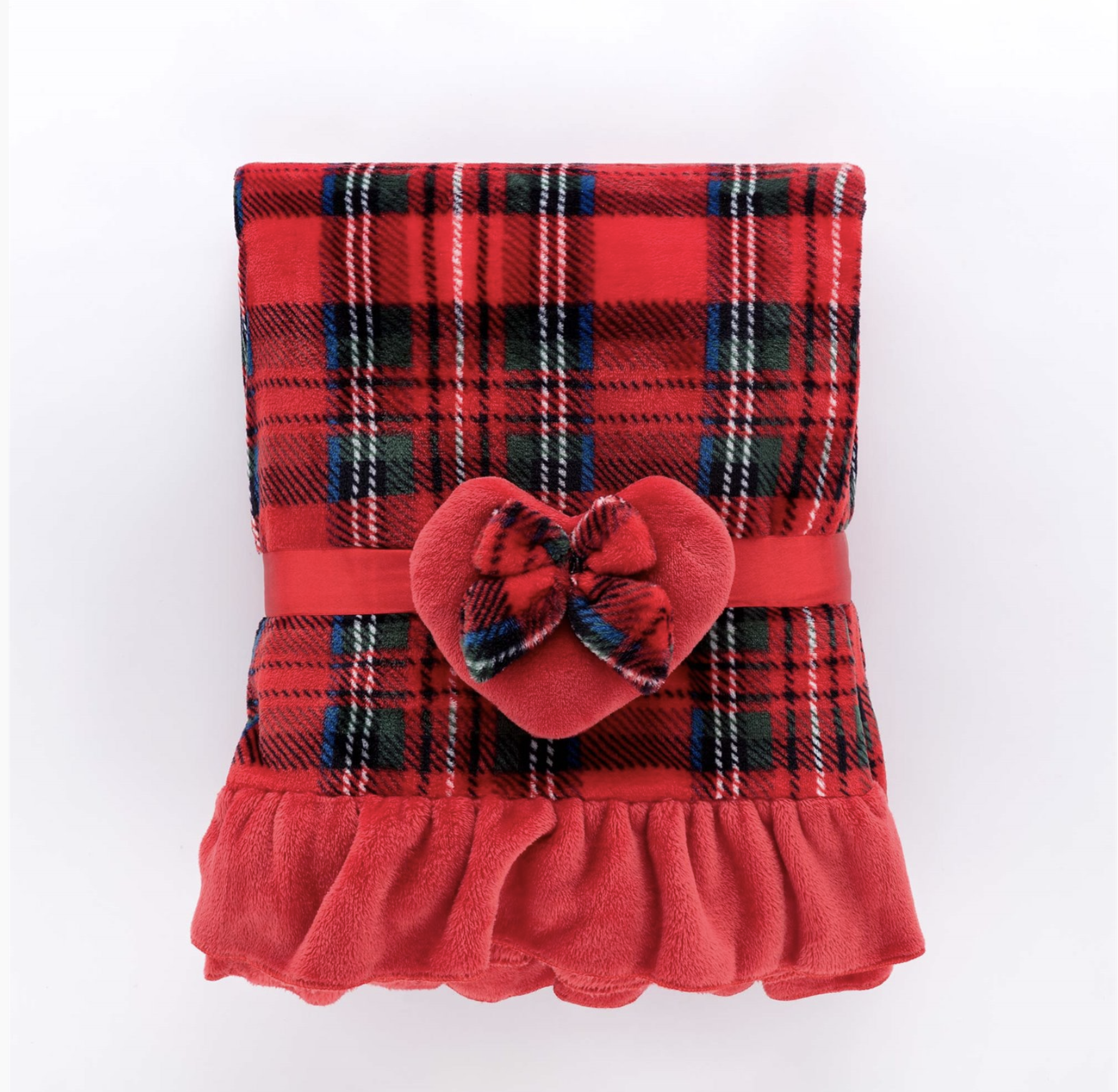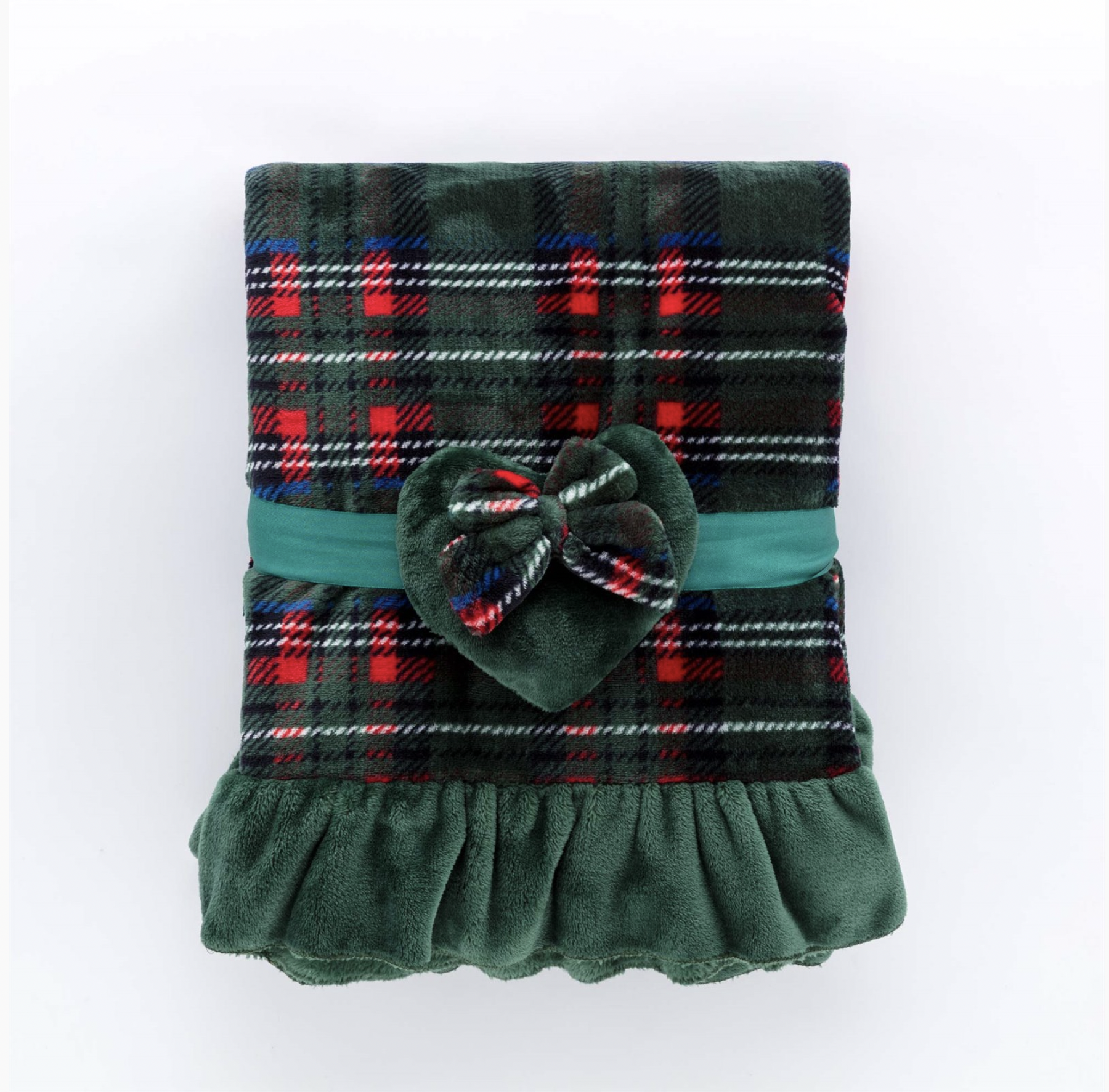 Plaid con balza Scott in tre colori: rosso, verde e beige.