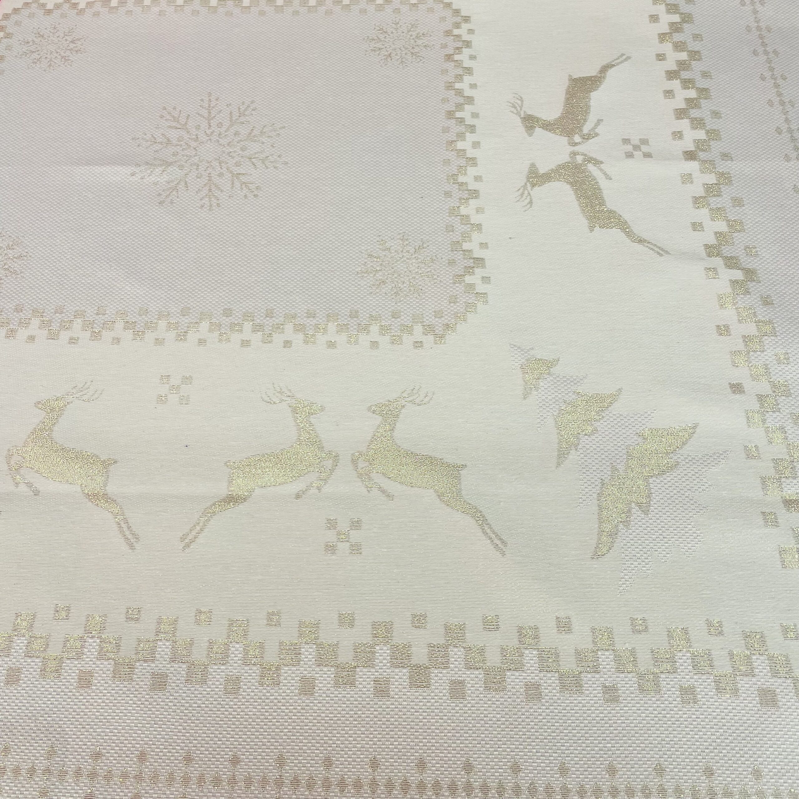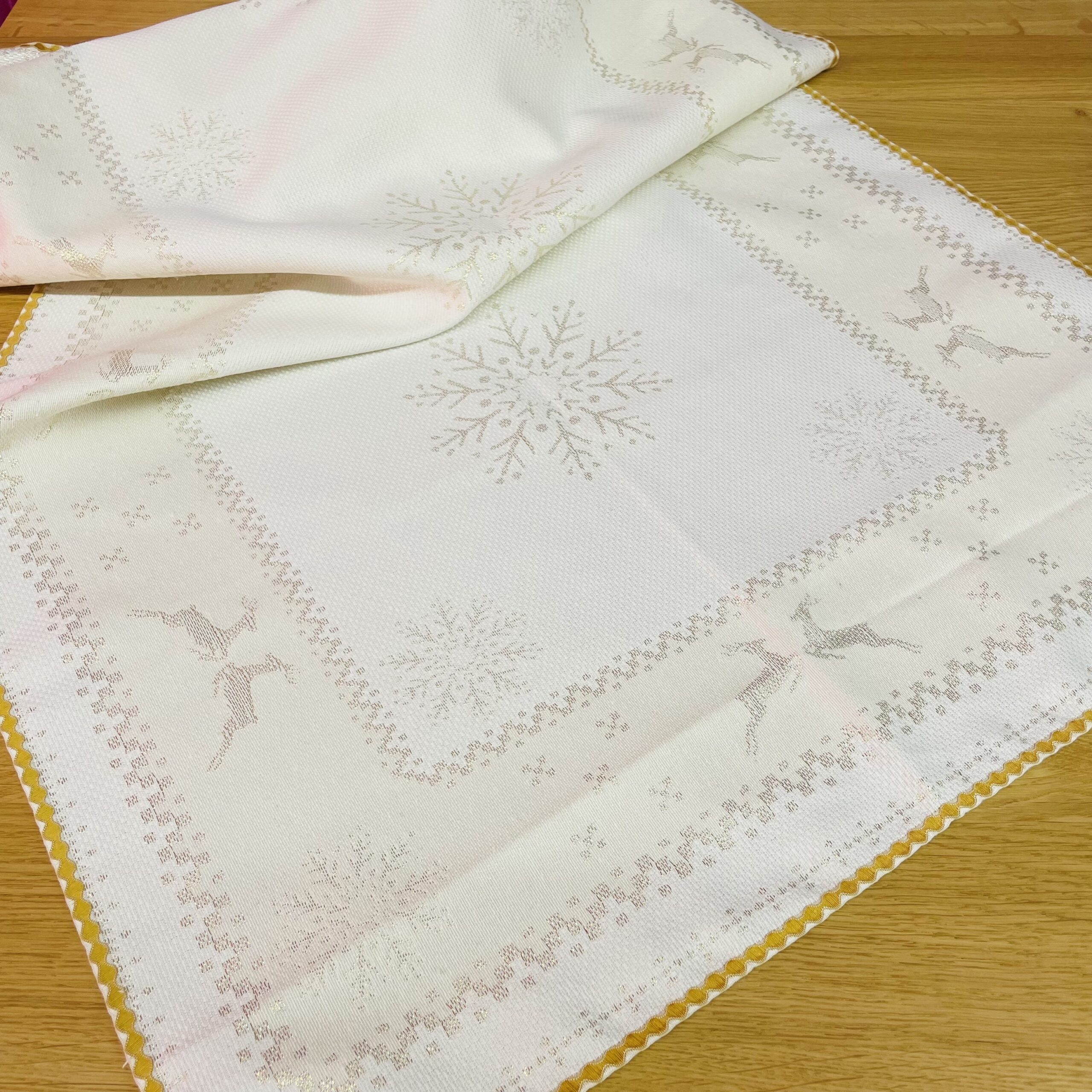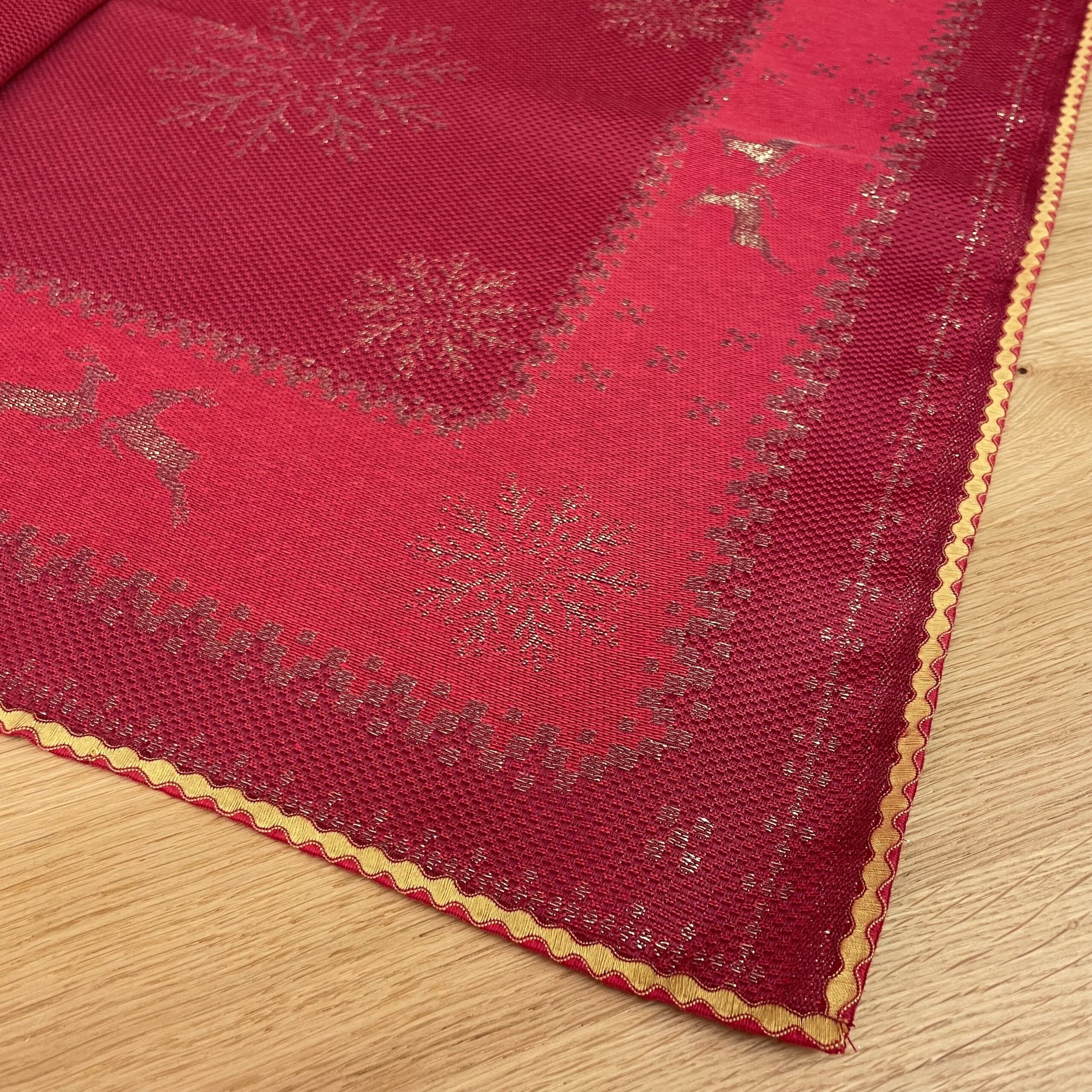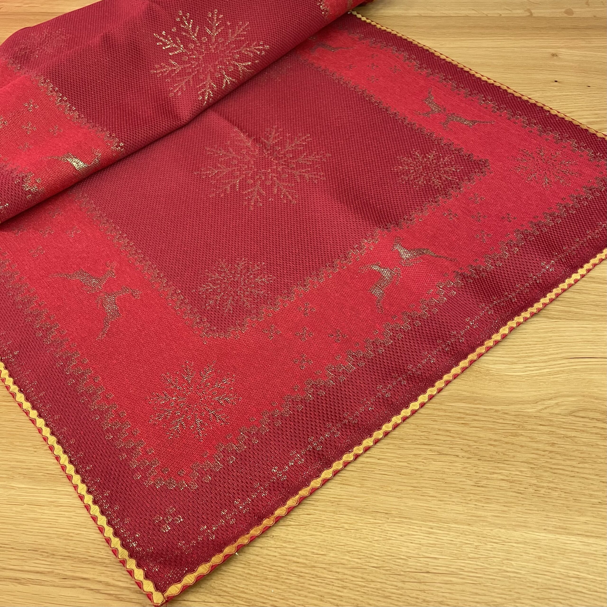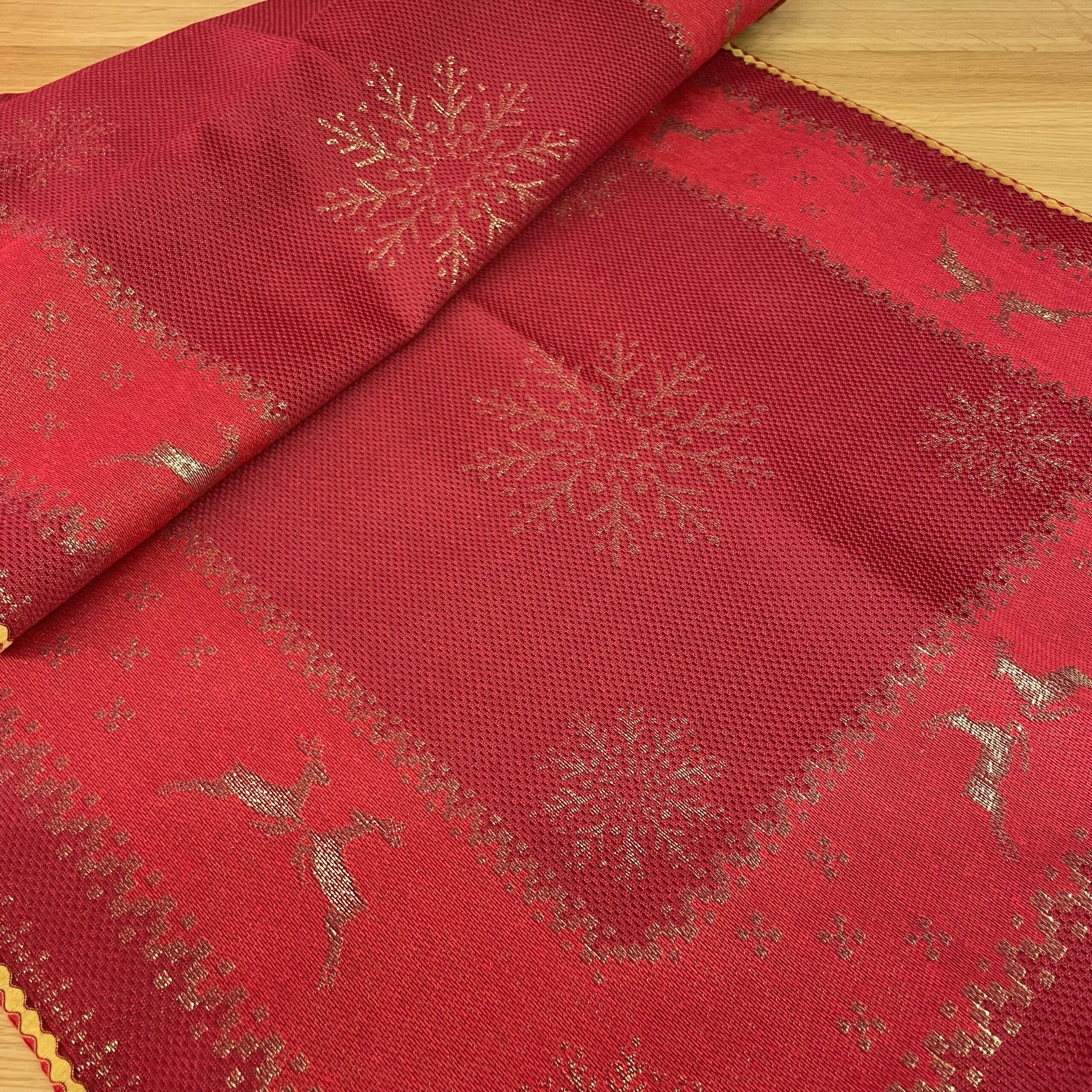 Runner sartoriale in cotone colore rosso o panna con inserti in oro, ideale da utilizzare sul tavolo o credenza
